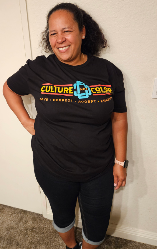 The "It's About Culture, Not Color" tee is a reminder that every culture has light- and dark-skinned people. We need to look past the exterior and focus on love, respect, acceptance, and embracing one another regardless of skin tone.